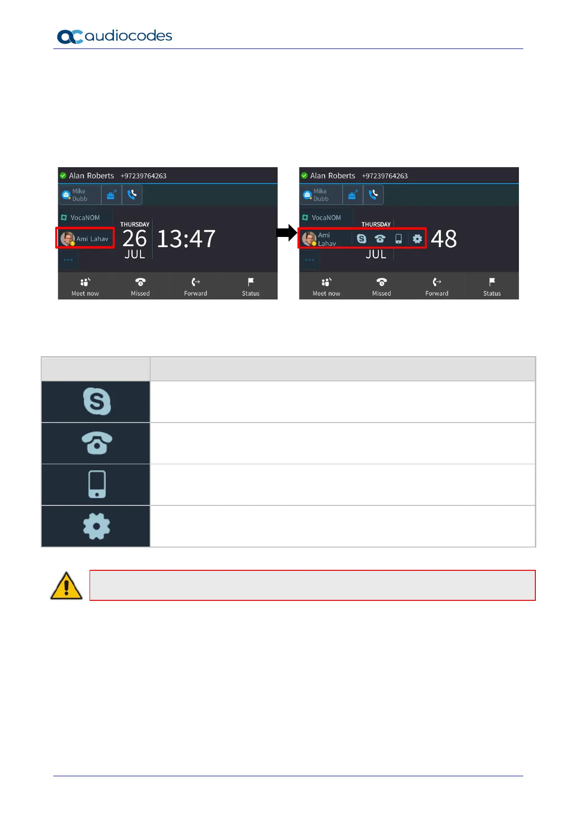 Note: Touching a speed dial dials the default option, namely, a Skype for Business call.