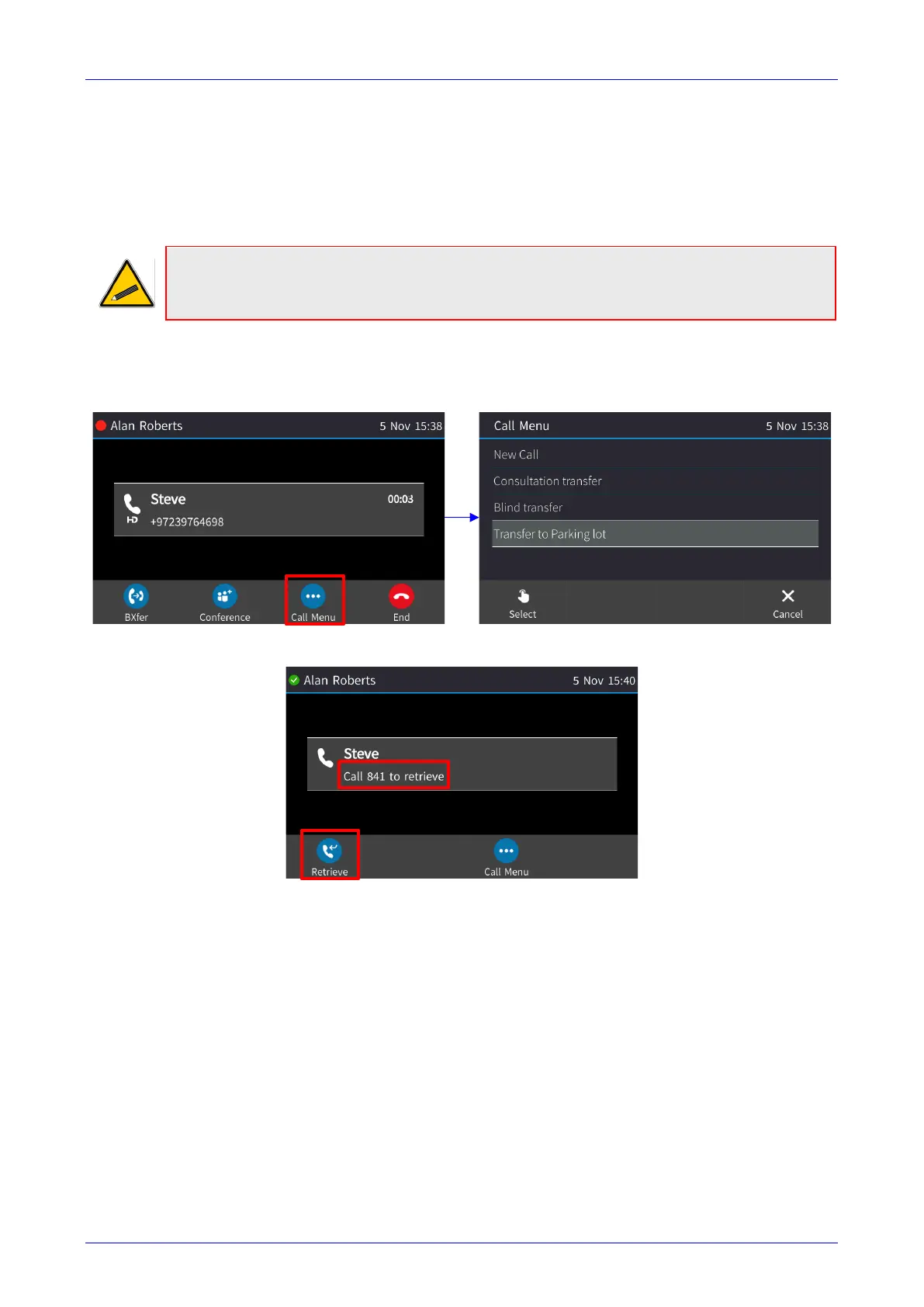 that phone. The retrieval number is configured in the Skype for Business server's parking lot