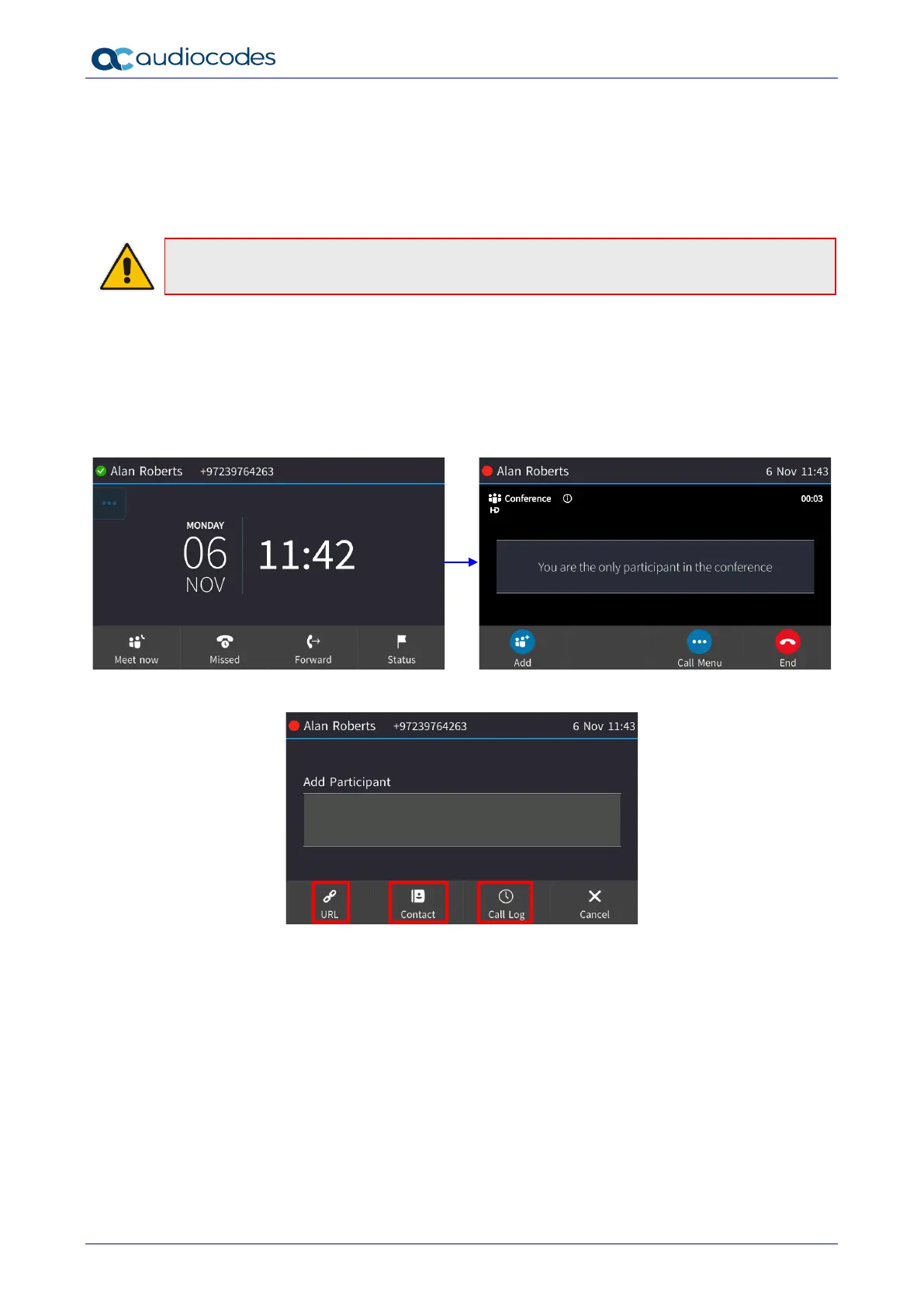 1. In the phone's idle screen, touch the Meet Now softkey; the Conference screen opens