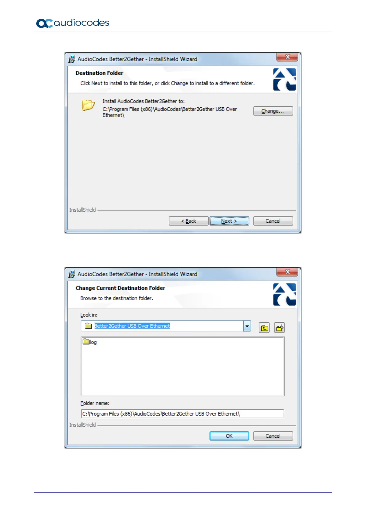 5. To change the default Destination Folder, click Change and proceed to step 6.