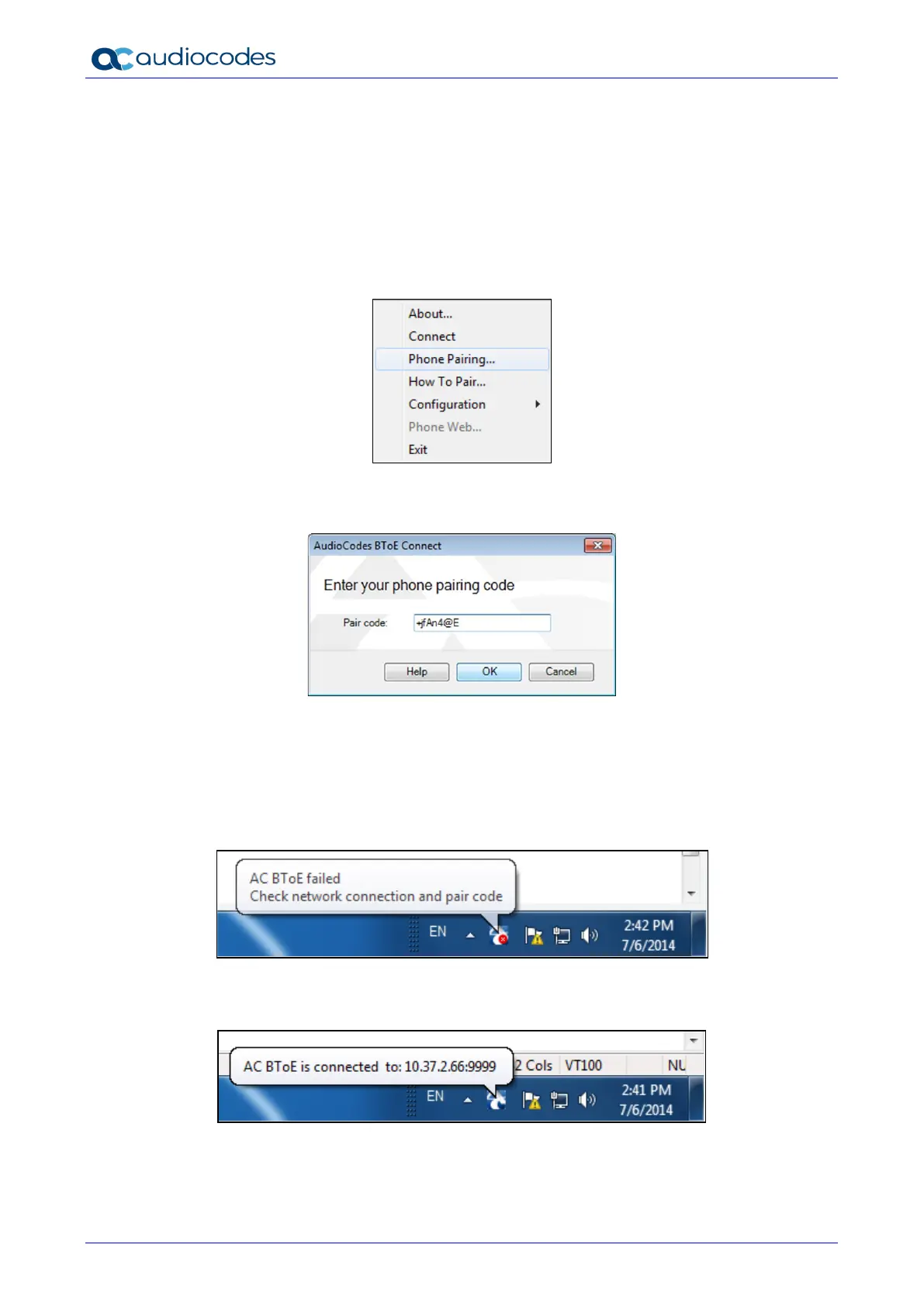 7.13.6.2 Manually Connecting the Phone with the BToE PC/Laptop Application