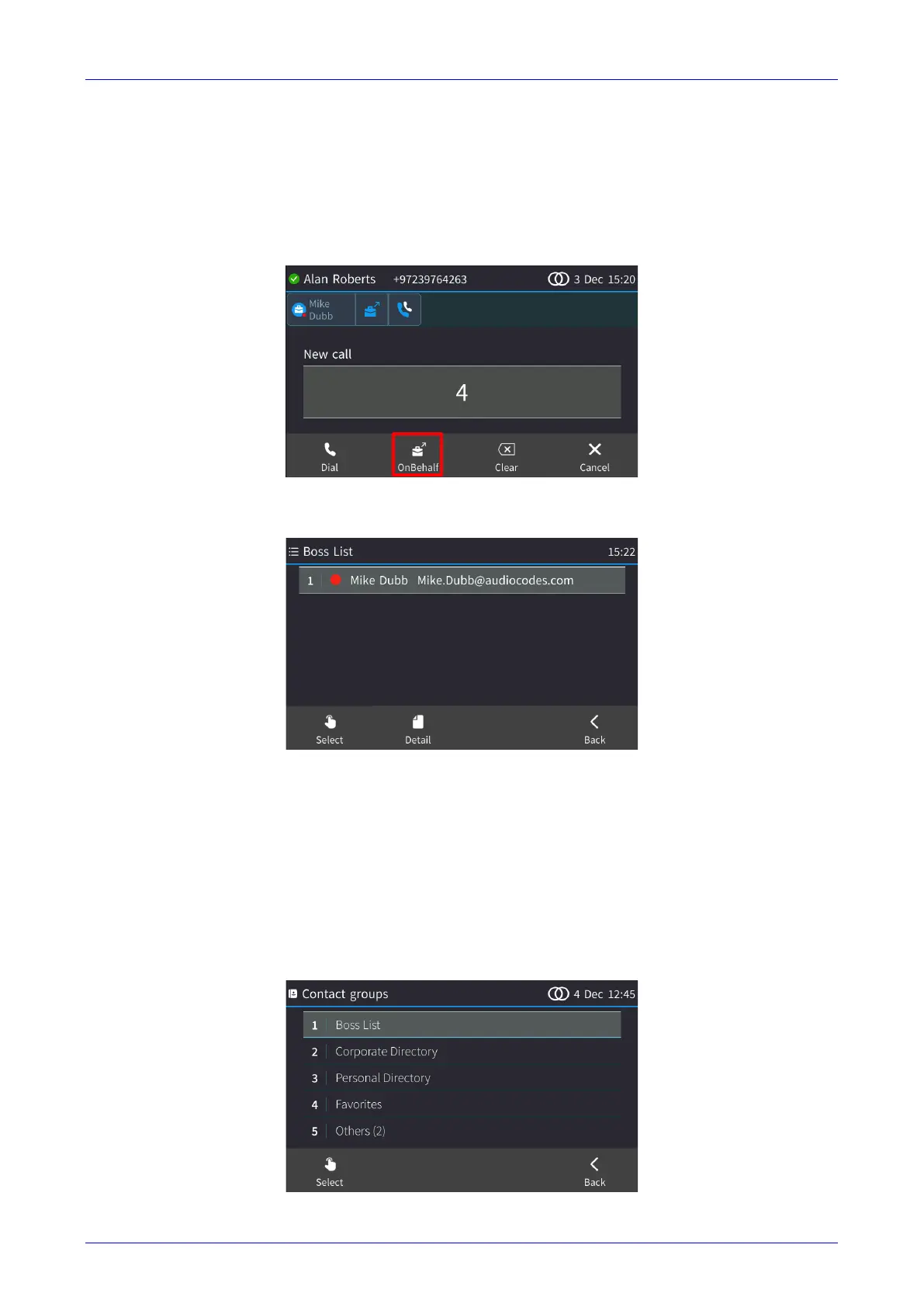 Boss, Mike Dubb, as an example), and then touch the Select softkey; the phone of the