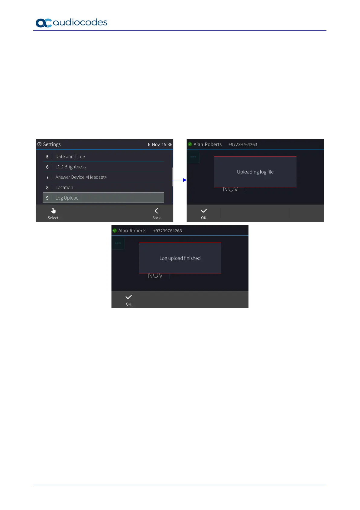 An integrated log upload feature allows network administrators to upload logs from the phone to