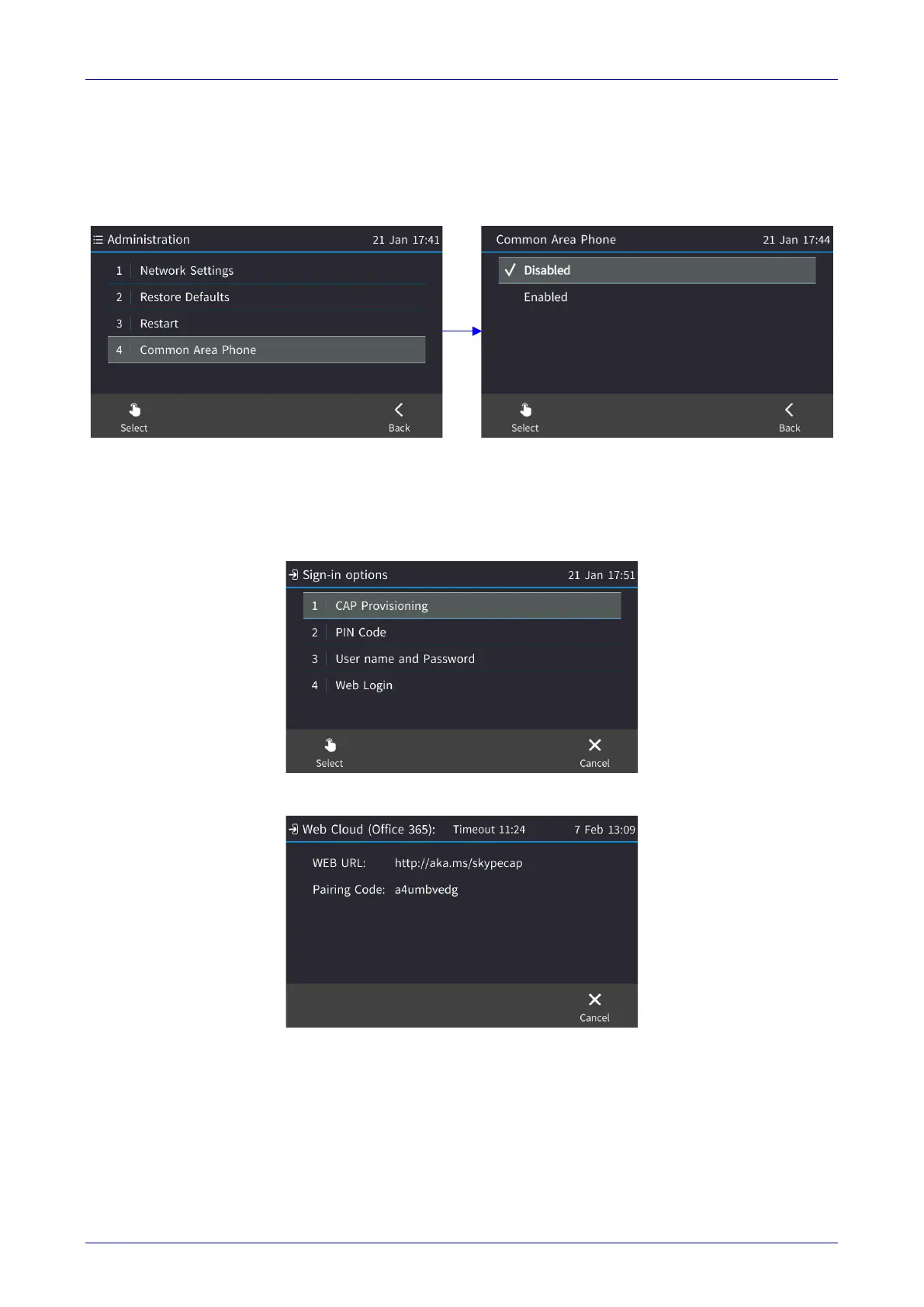 2. After selecting the 'CAP provisioning' method, view a displayed URL and Pairing Code.