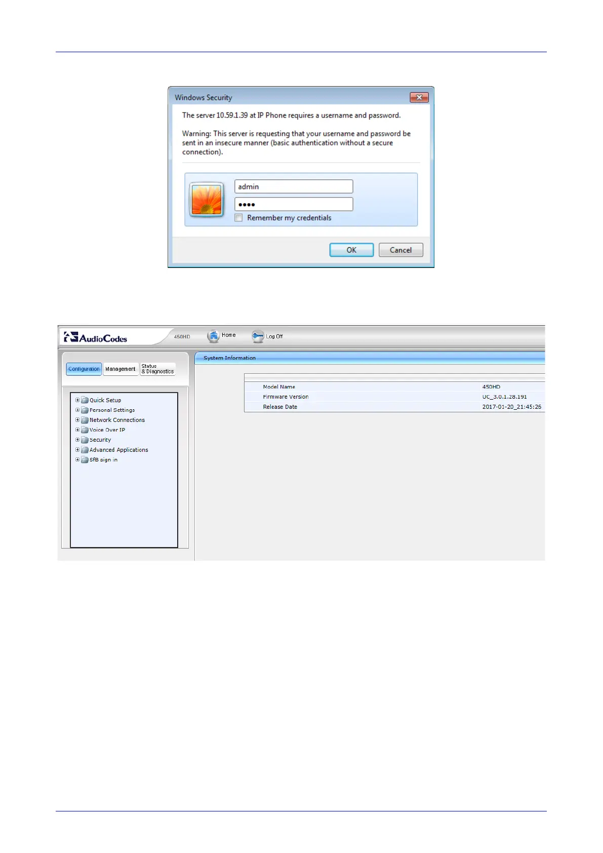 3. In the Web interface, open the Sign-In page (Configuration tab > SfB sign in > Sign in).