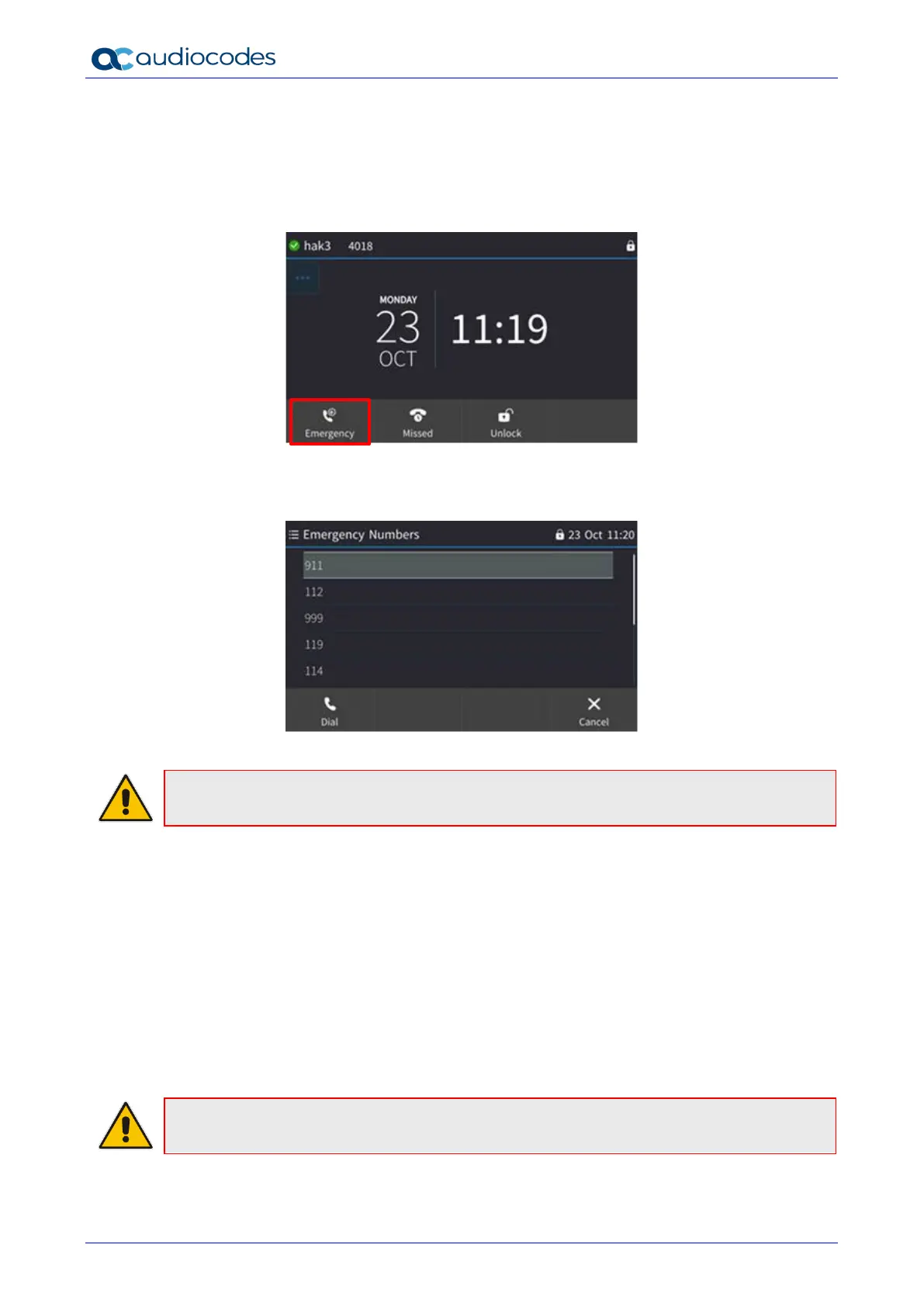 service, etc., will still be available and dialable via an Emergency softkey that is displayed in the