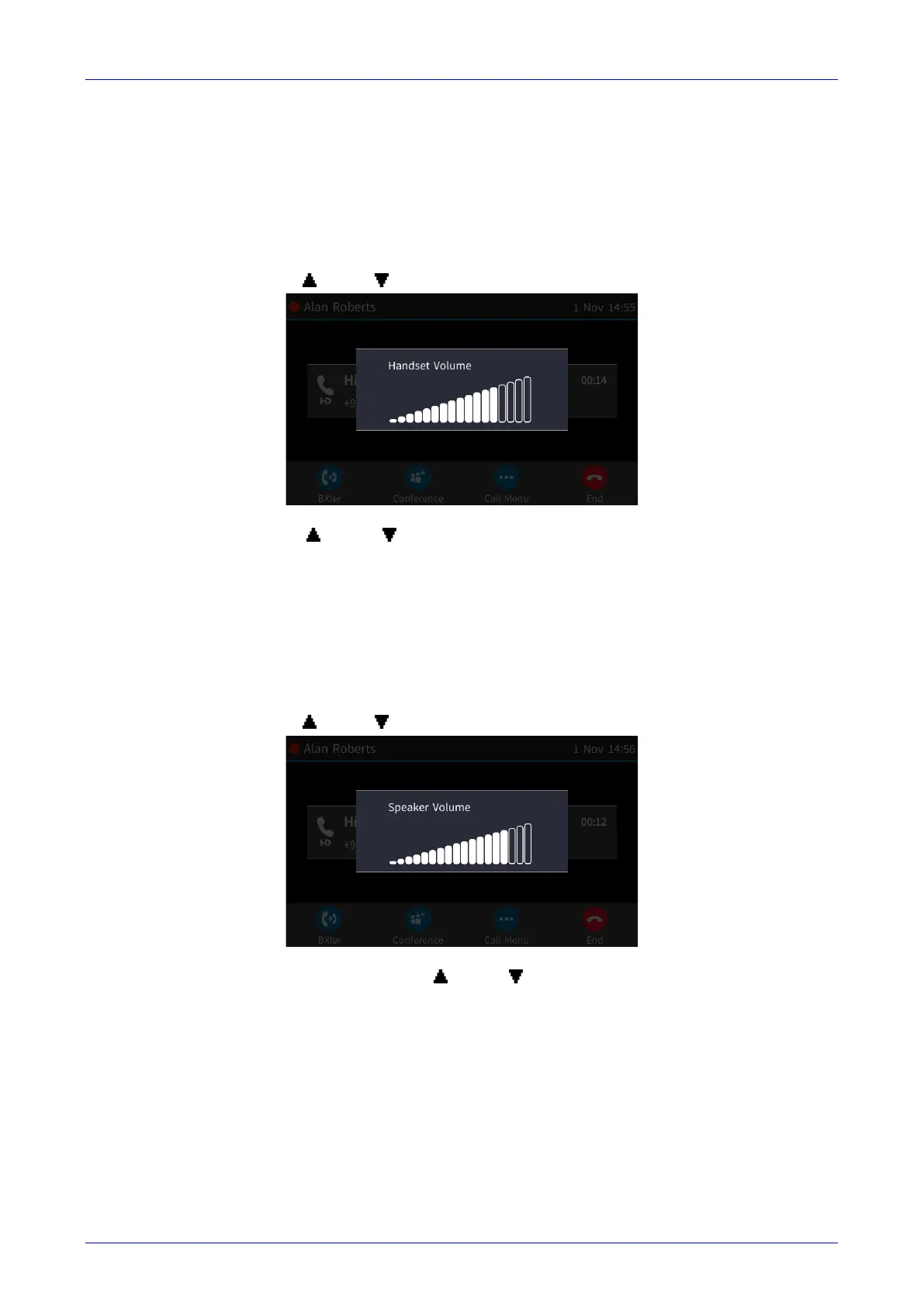 key. After adjusting, the Handset Volume bar disappears from