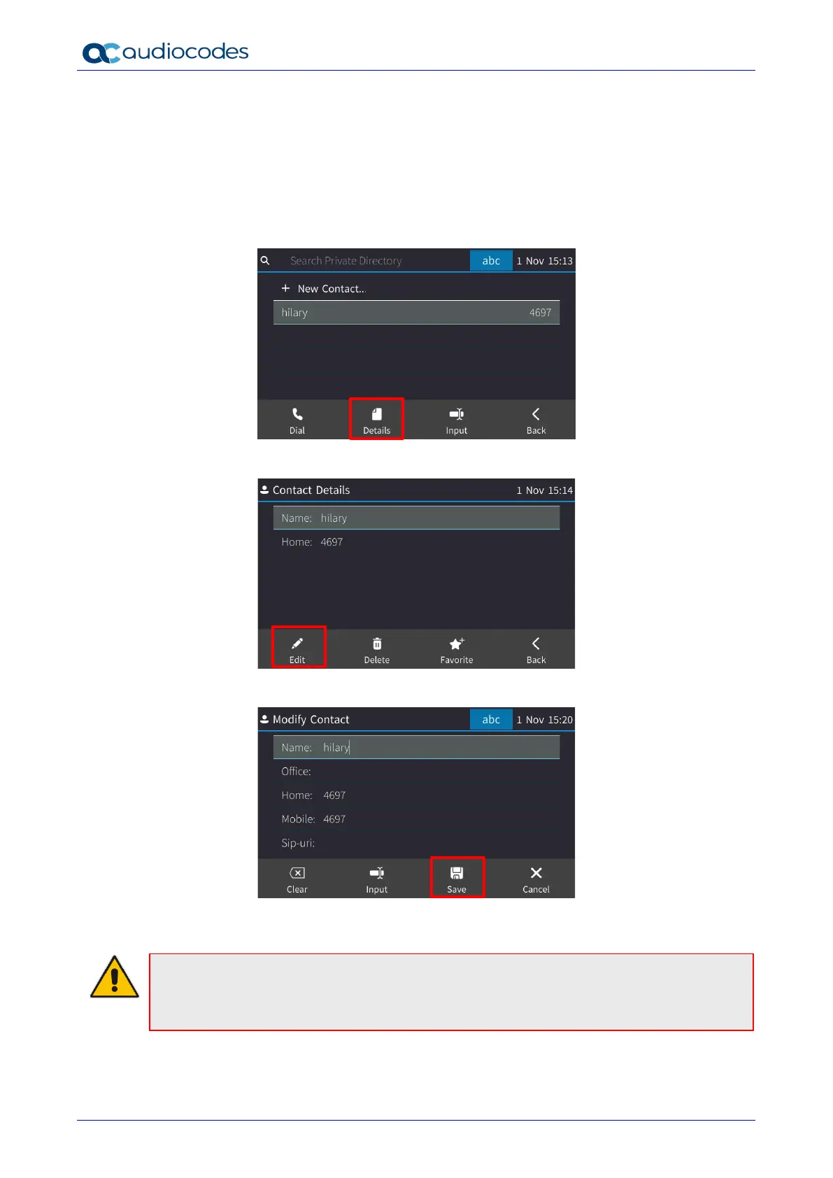 5. Modify the contact’s details and touch the Save softkey.