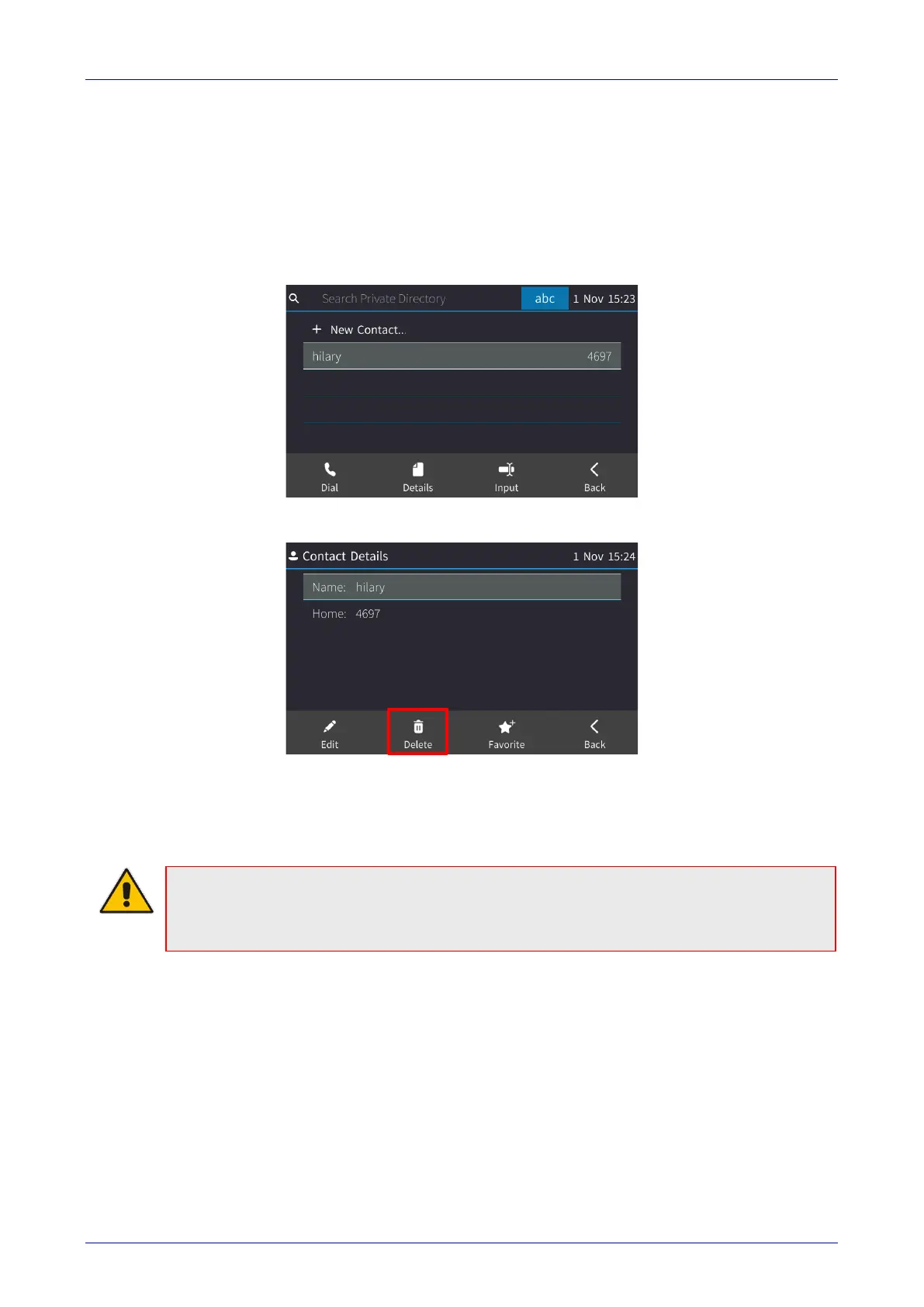 • Only Personal Directory contacts can be deleted.