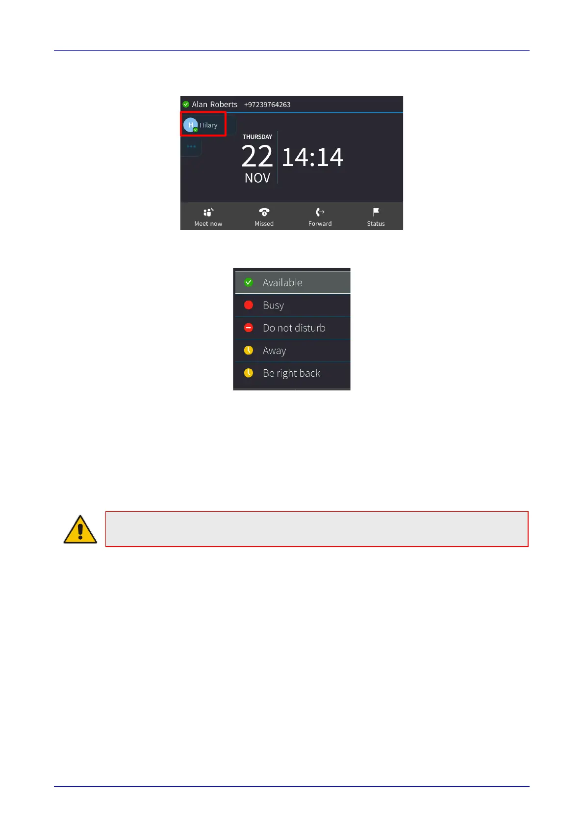 5. To determine presence status, refer to the figure below. In the figure above, Hilary’s