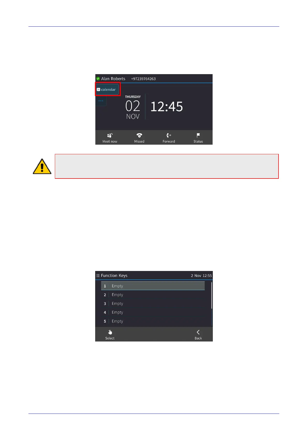 Function Key 1 has been configured as a ‘Calendar’ Key Event. Pressing it opens the Calendar