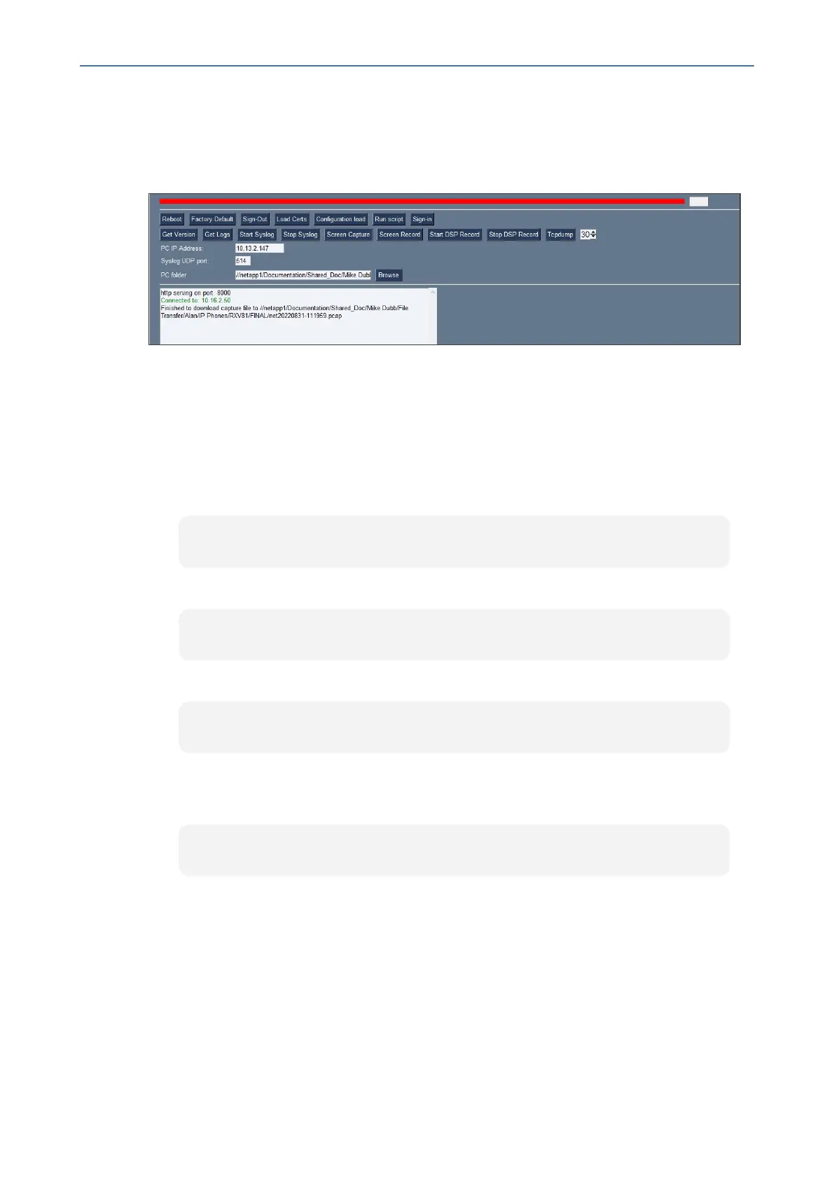 2. Nexttothe Tcpdump button,setthetimeperiodorleaveitatthedefault.Default:30