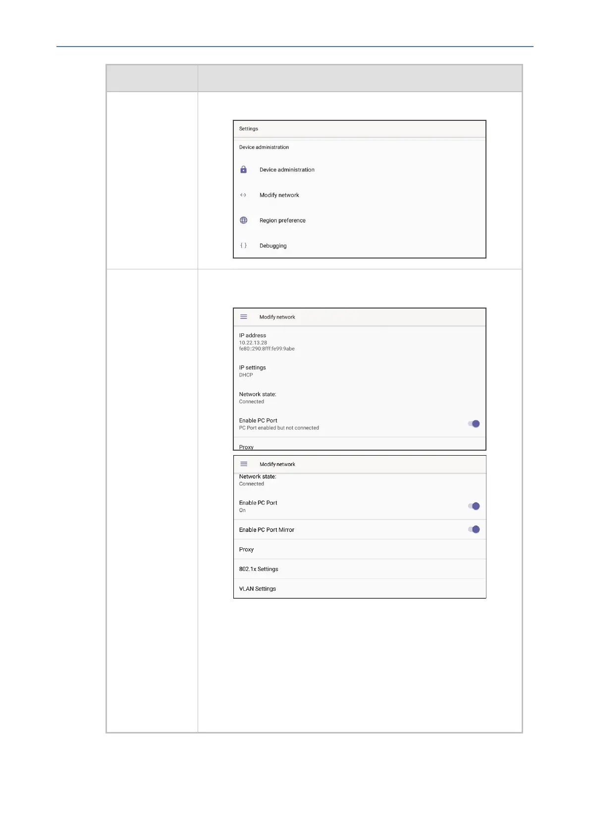 Modifynetwork EnablestheAdminusertodeterminenetworkinformationandto
