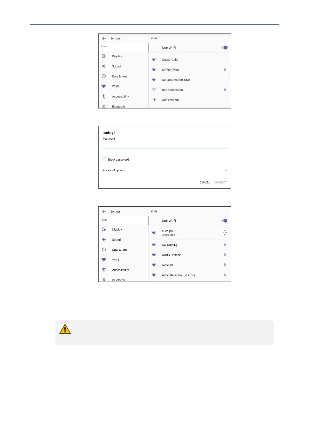 1. IntheWi-Fiscreen(Settings>Wi-Fi),click+ Add networkandthenentertheSSIDofthe