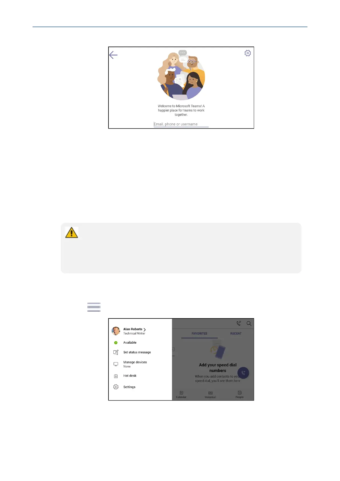 1. Inthehomescreen,selecttheuser(avatar)pictureorintheCallsandCalendarscreen,