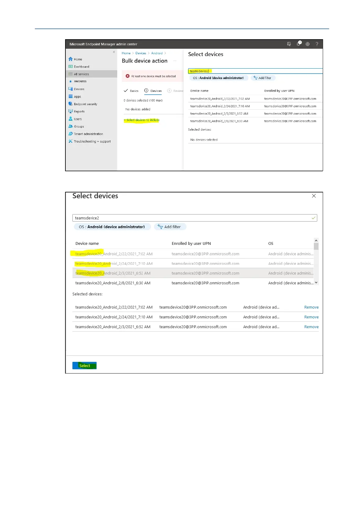 8. SelectallthedevicestoberemovedandclickSelect icon.
