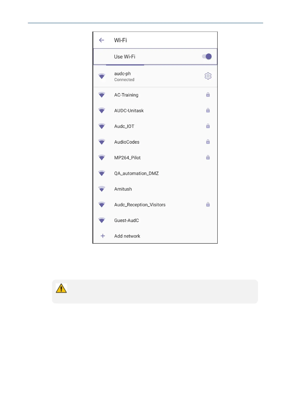 1. IntheWi-Fiscreen(Settings>Wi-Fi),click+ Add networkandthenentertheSSIDofthe