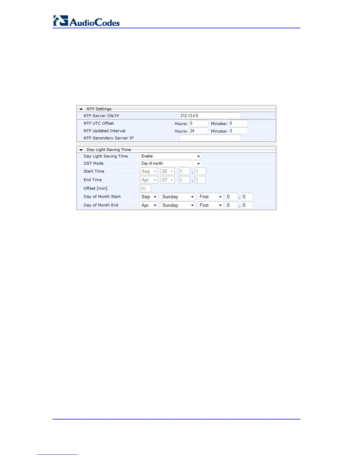 • 'Day Light Saving Time' (DayLightSavingTimeEnable) - enables daylight saving