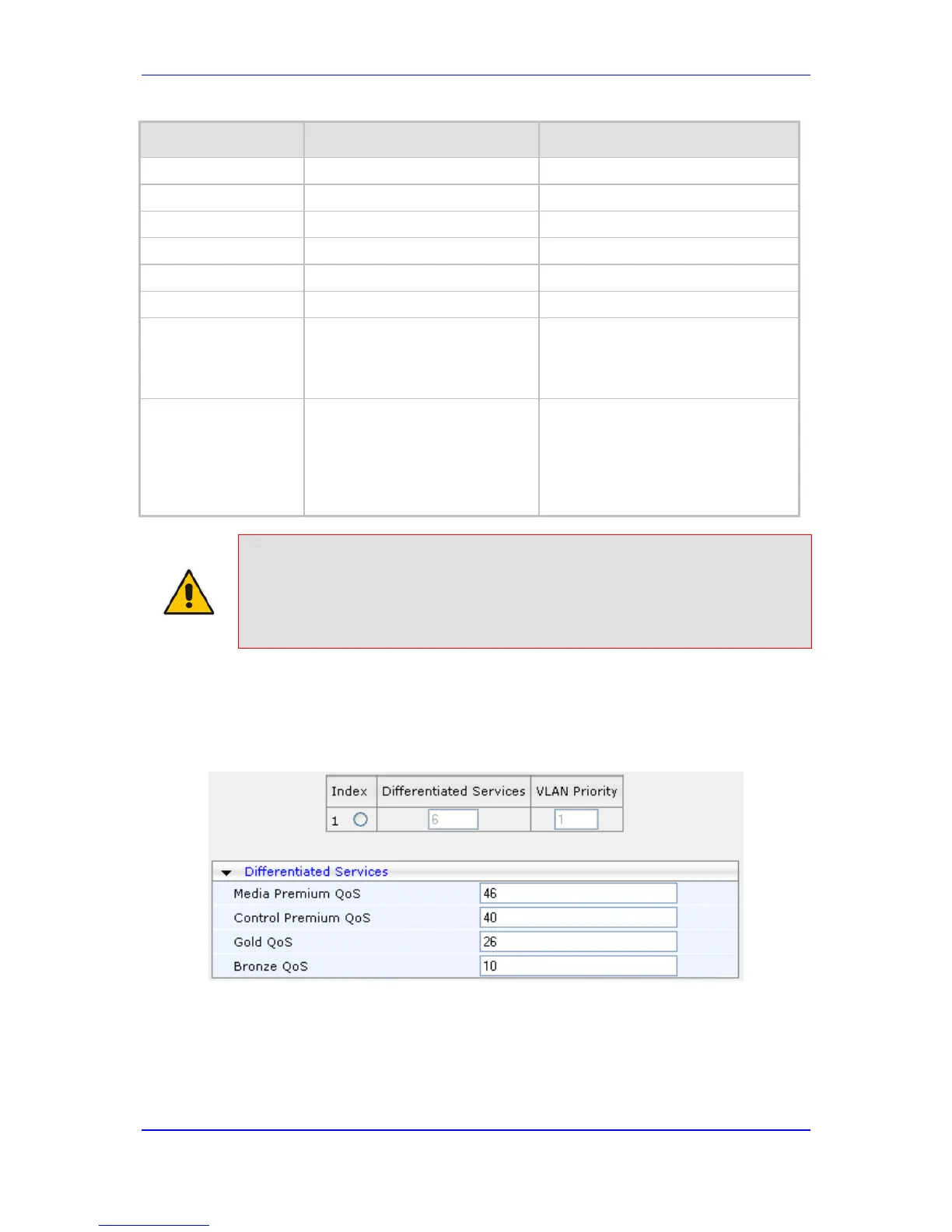 1. Open the Diff Serv Table page (Configuration tab > VoIP menu > Network submenu