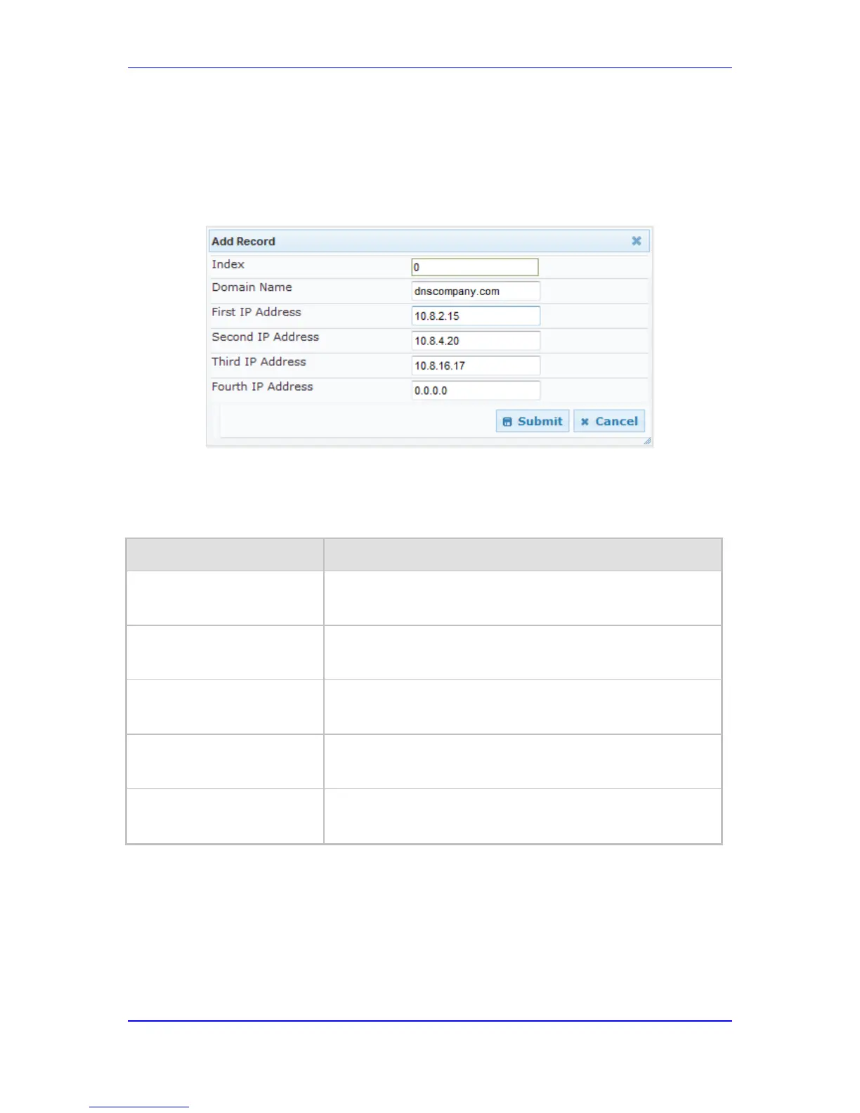 Figure 14-5: Internal DNS Table - Add Record Dialog Box