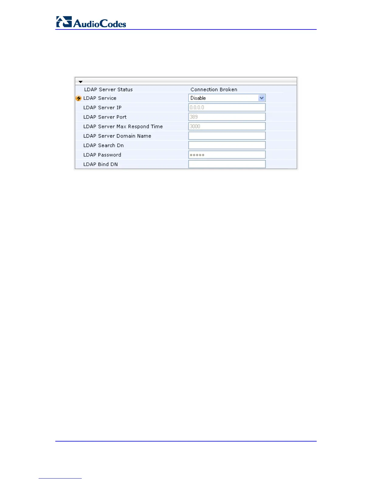 1. Open the LDAP Settings page (Configuration tab > VoIP menu > Services submenu