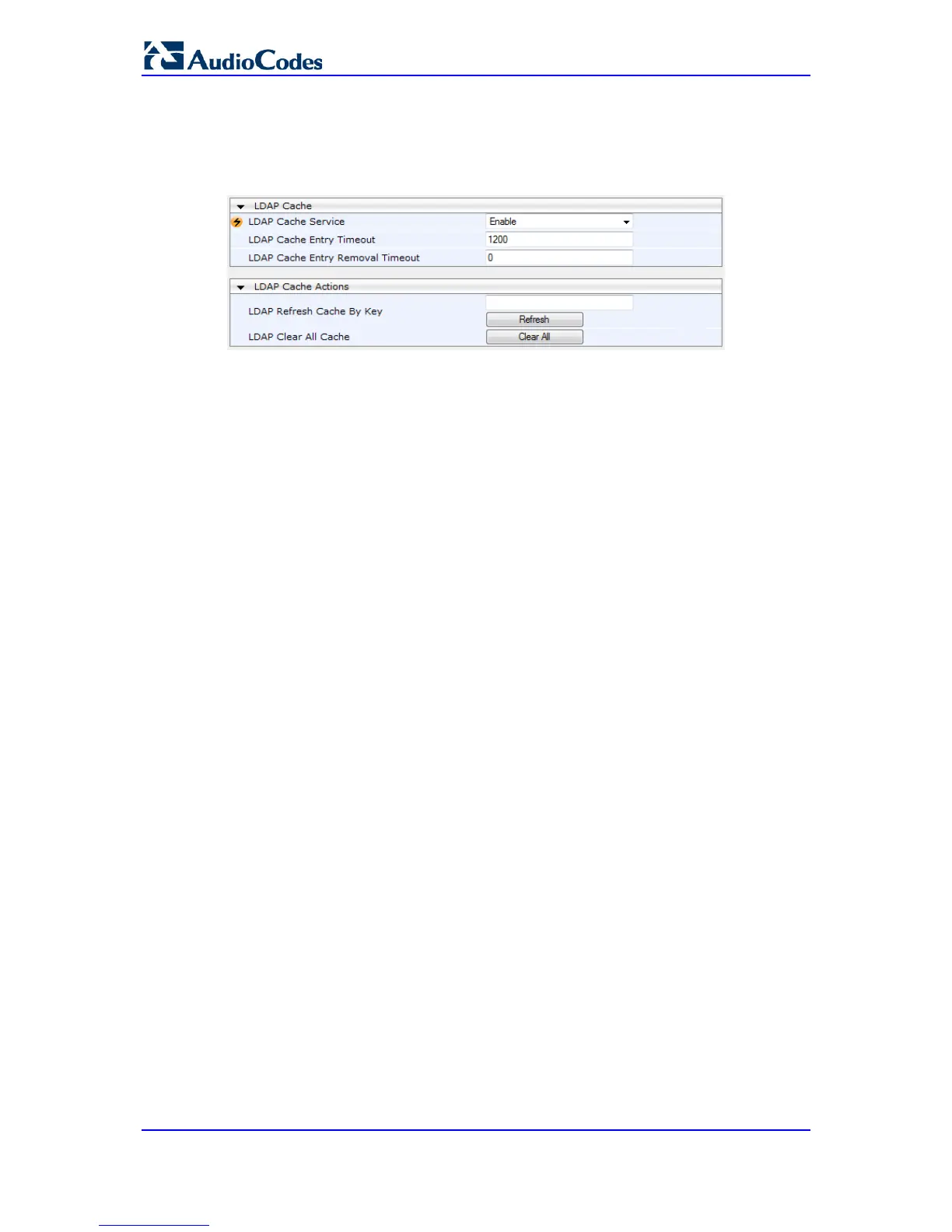 Figure 17-3: LDAP Settings Page - Cache Parameters