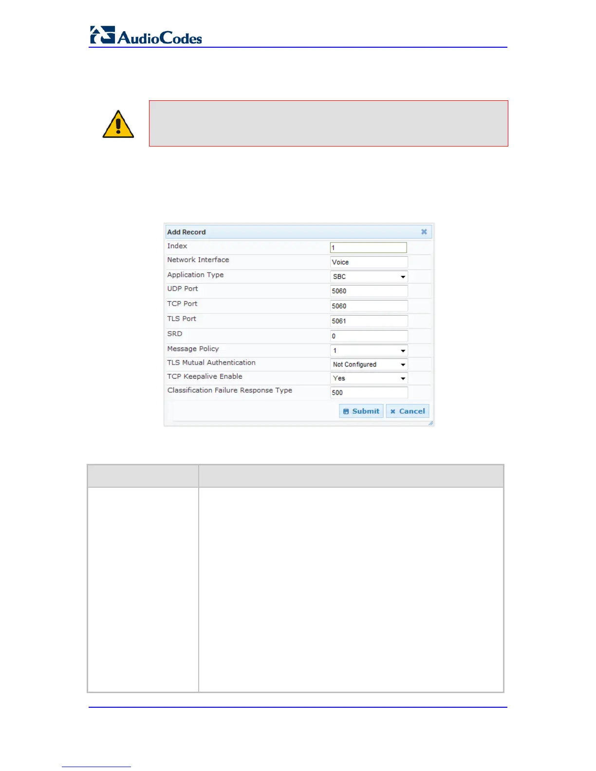 1. Open the SIP Interface Table page (Configuration tab > VoIP menu > Control