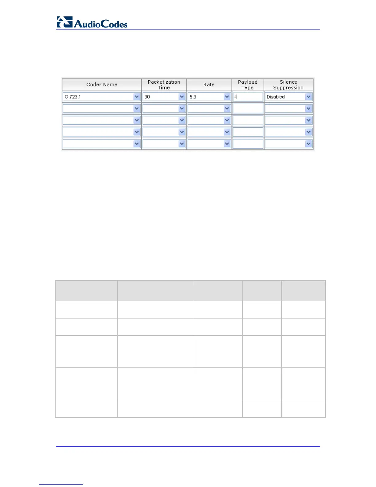 1. Open the Coders page (Configuration tab > VoIP menu > Coders and Profiles