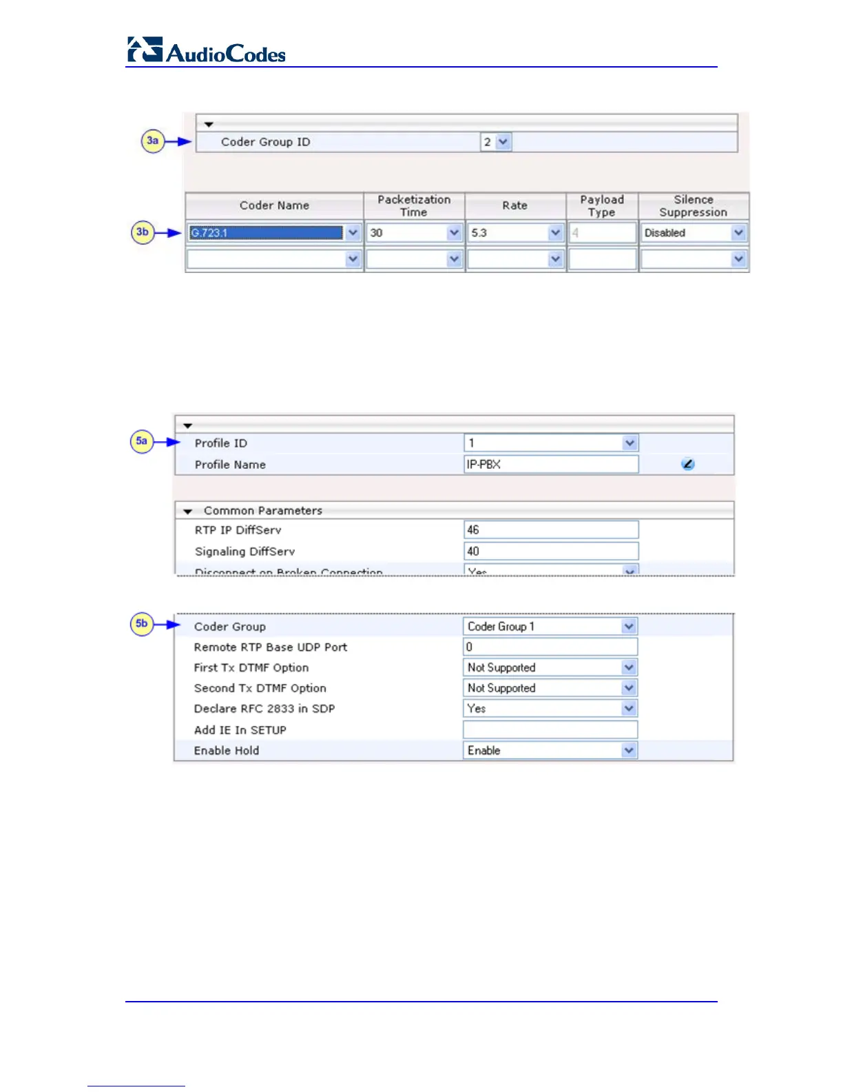 5. Configure Profile ID #1 for the IP-PBX (as shown below):