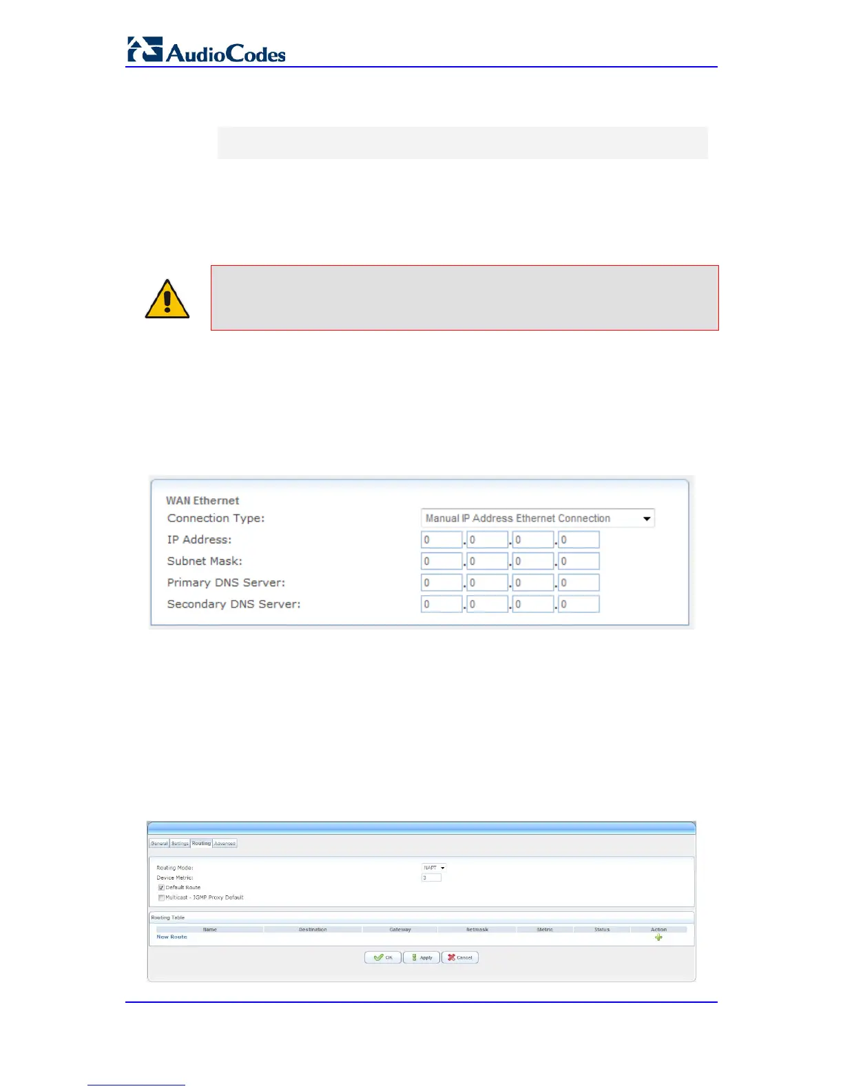 b. Click the Click here for Advanced Settings link, and then select the Routing