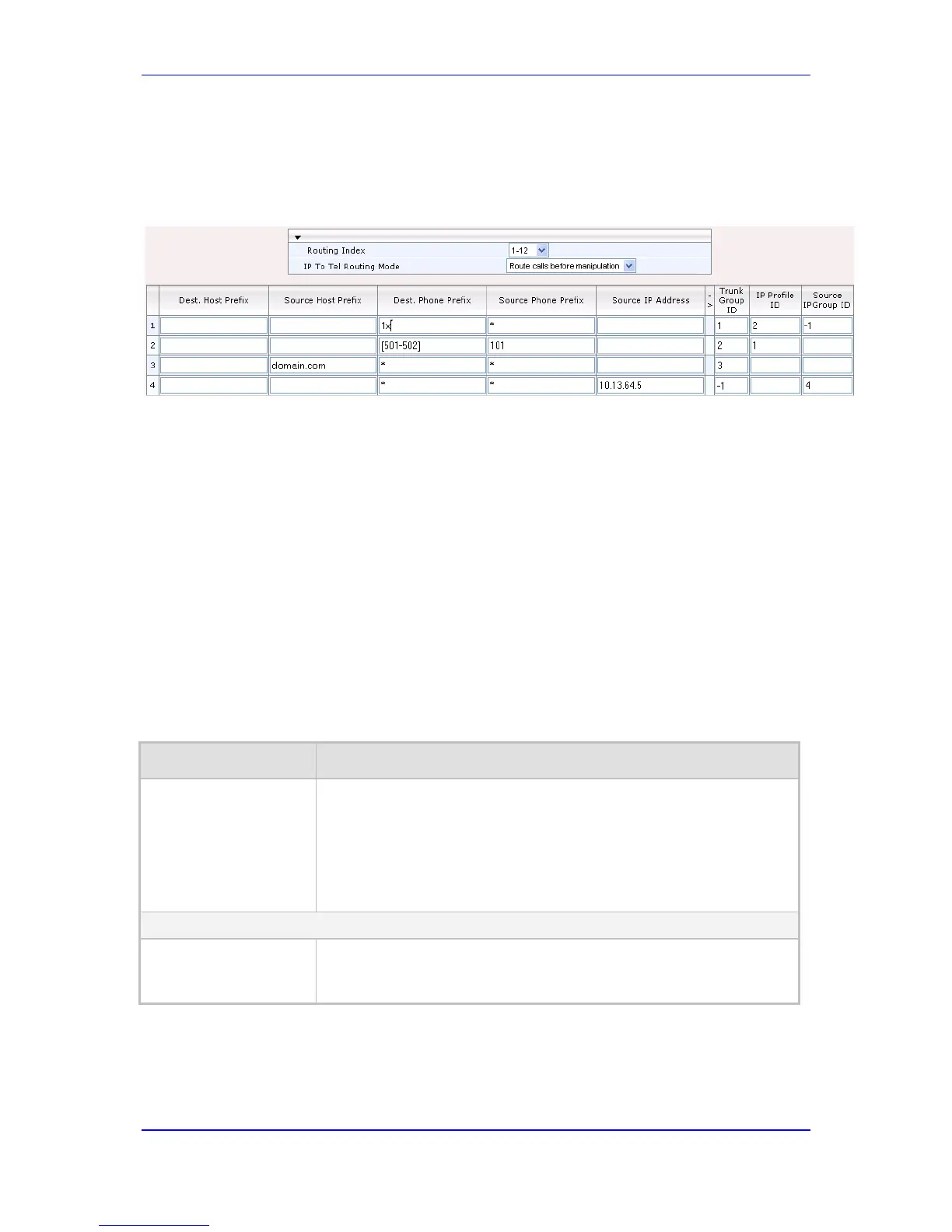 • Rule 2: If the incoming IP call destination phone prefix is between 501 and 502