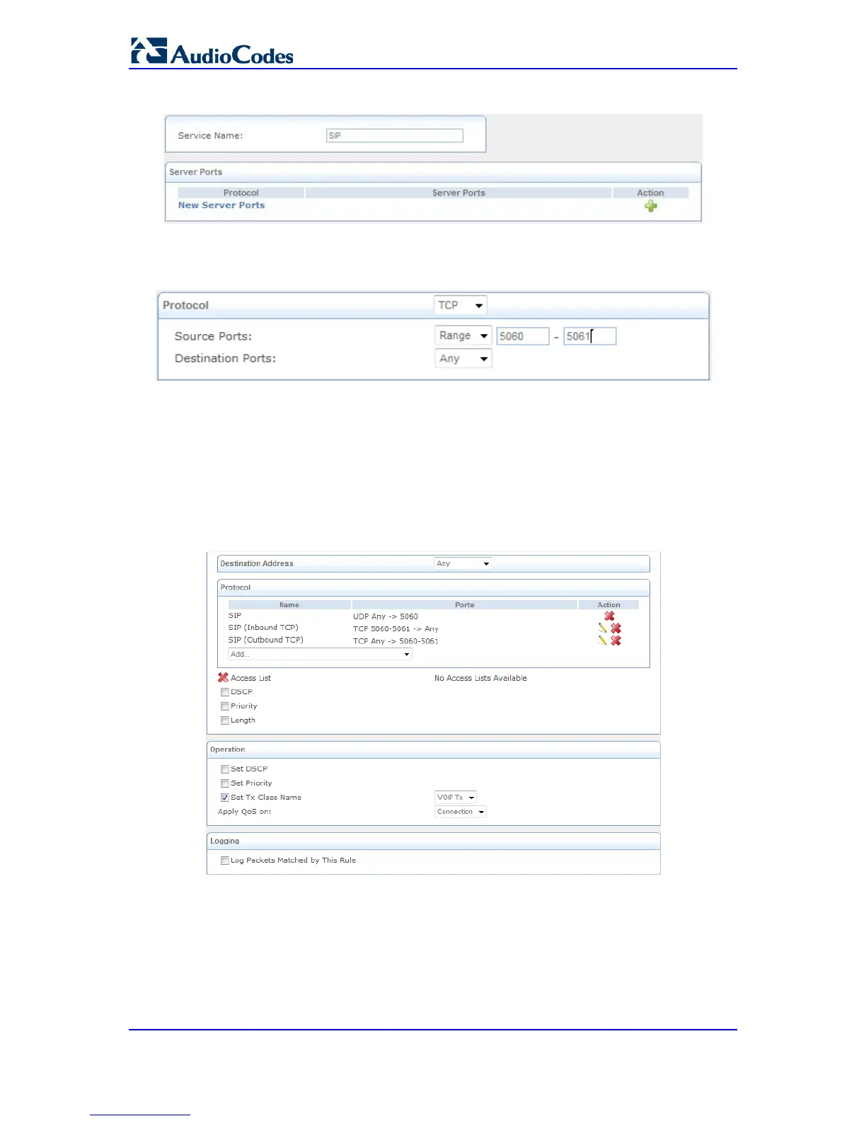 f. Perform steps 2b through 2e to configure ports for outgoing SIP packets.