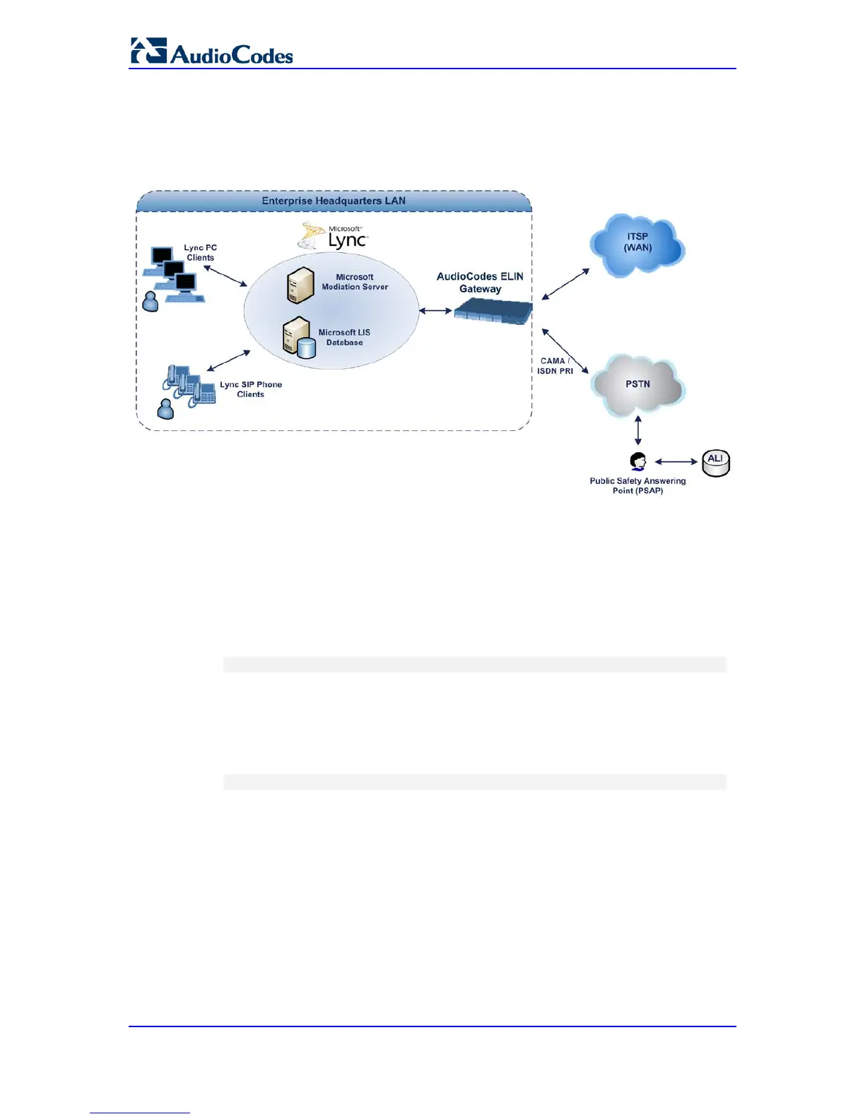 The figure below illustrates an AudioCodes ELIN Gateway deployed in the Lync Server