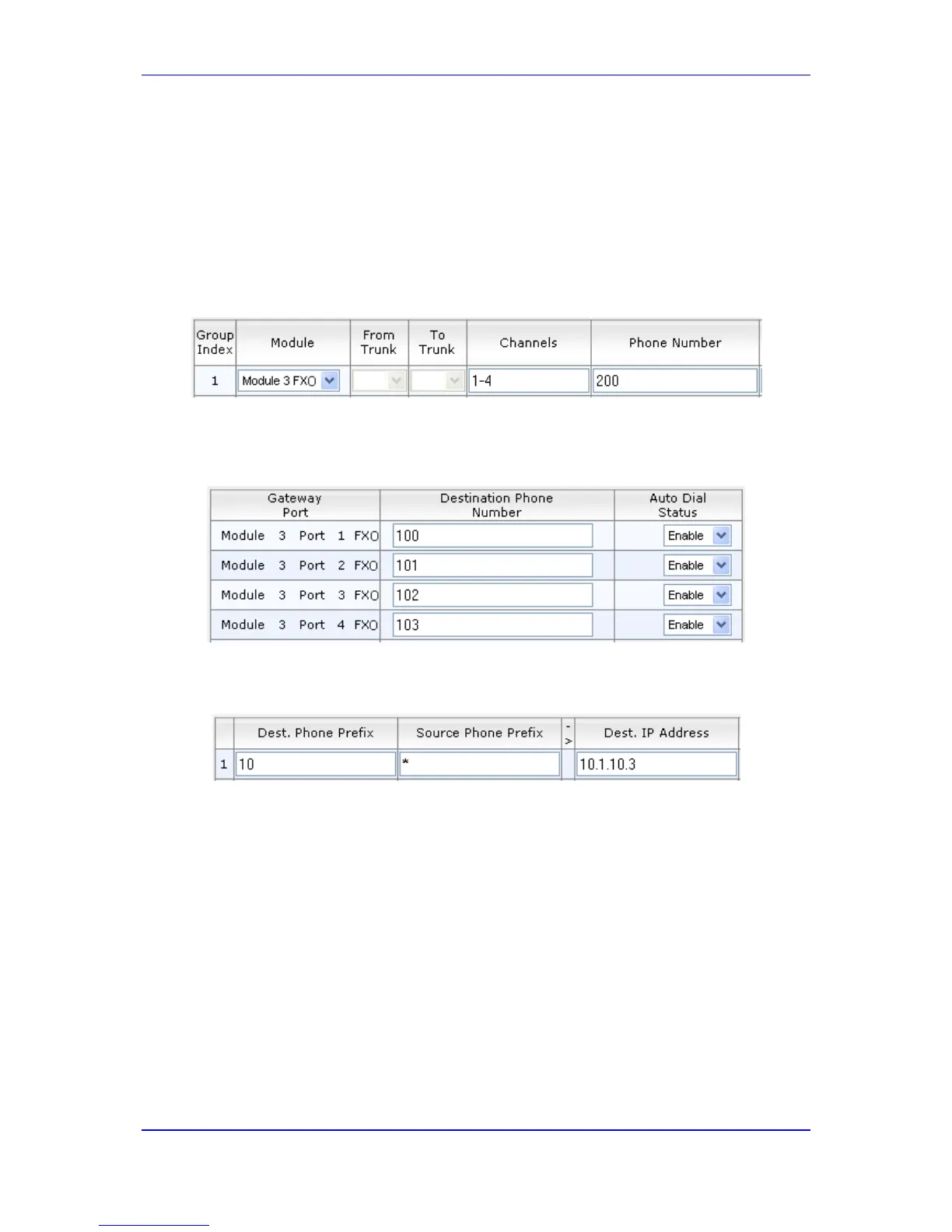 5. In the Automatic Dialing page, enter the phone numbers of the FXS device in the