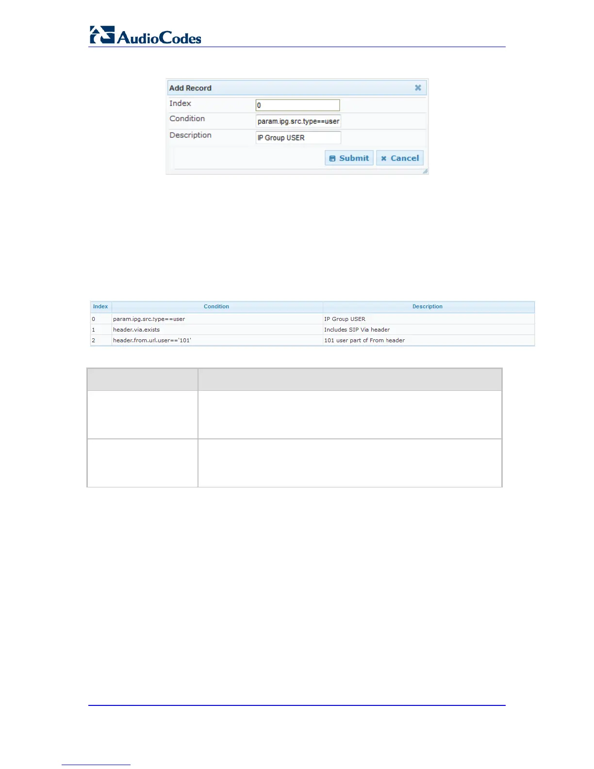Figure 31-6: Condition Table Page - Add Record Dialog Box