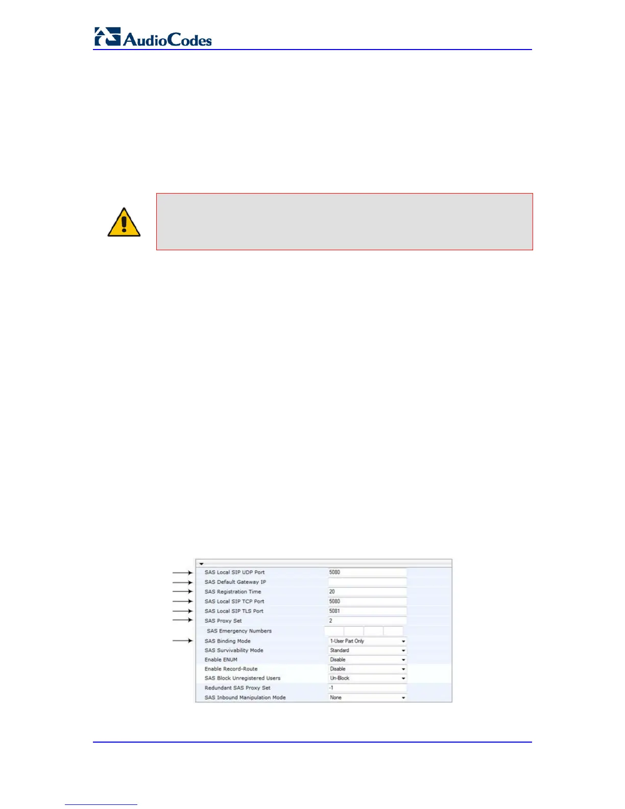 • UDP port - defined in the 'SAS Local SIP UDP Port' field