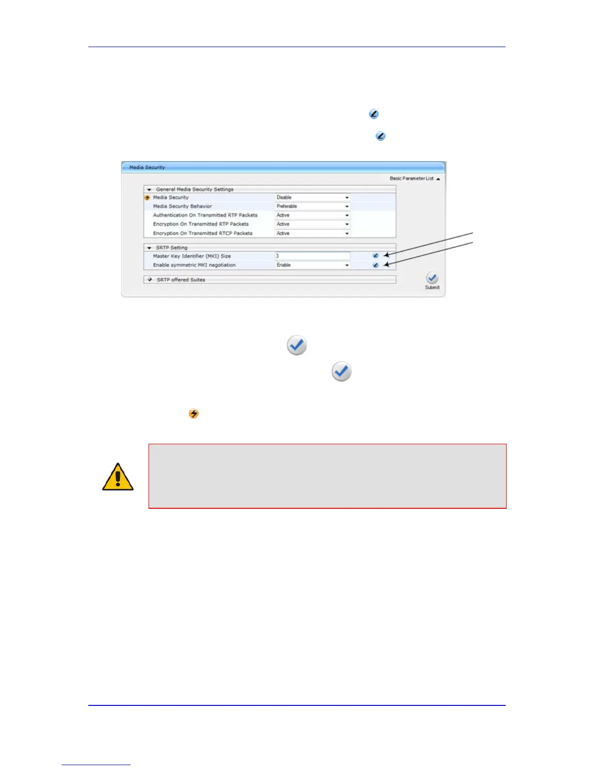 When you modify a parameter value on a page, the Edit symbol appears to the right of