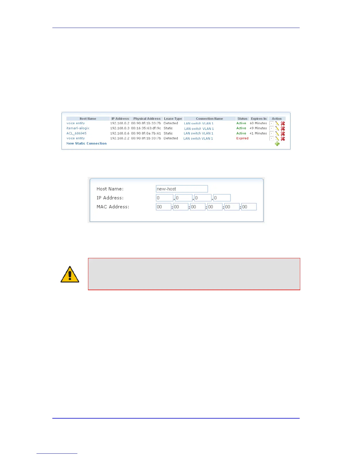 3. To define a new connection with a fixed IP address, click the New Static Connection