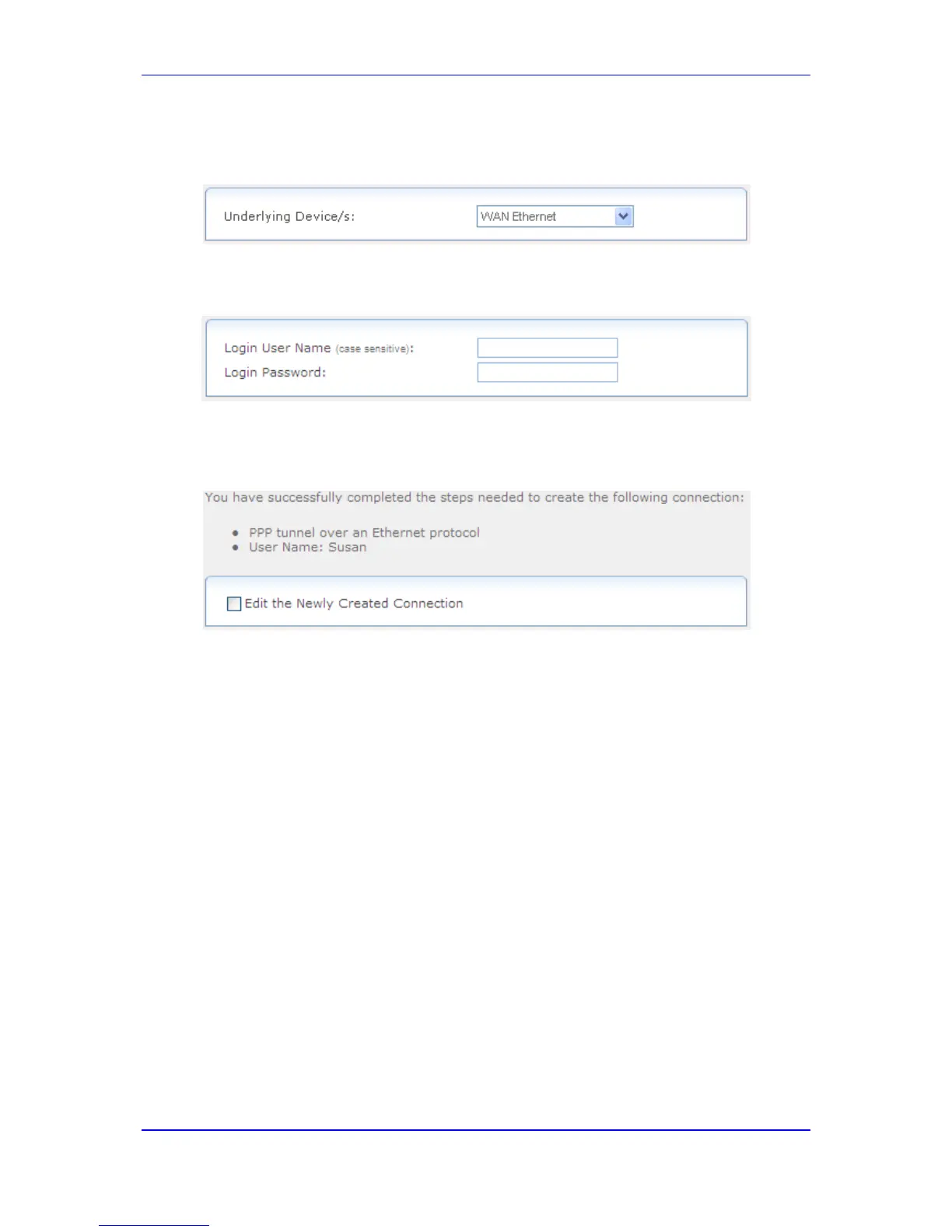 5. In the 'Login User Name' and 'Login Password' fields, enter the PPPoE username and