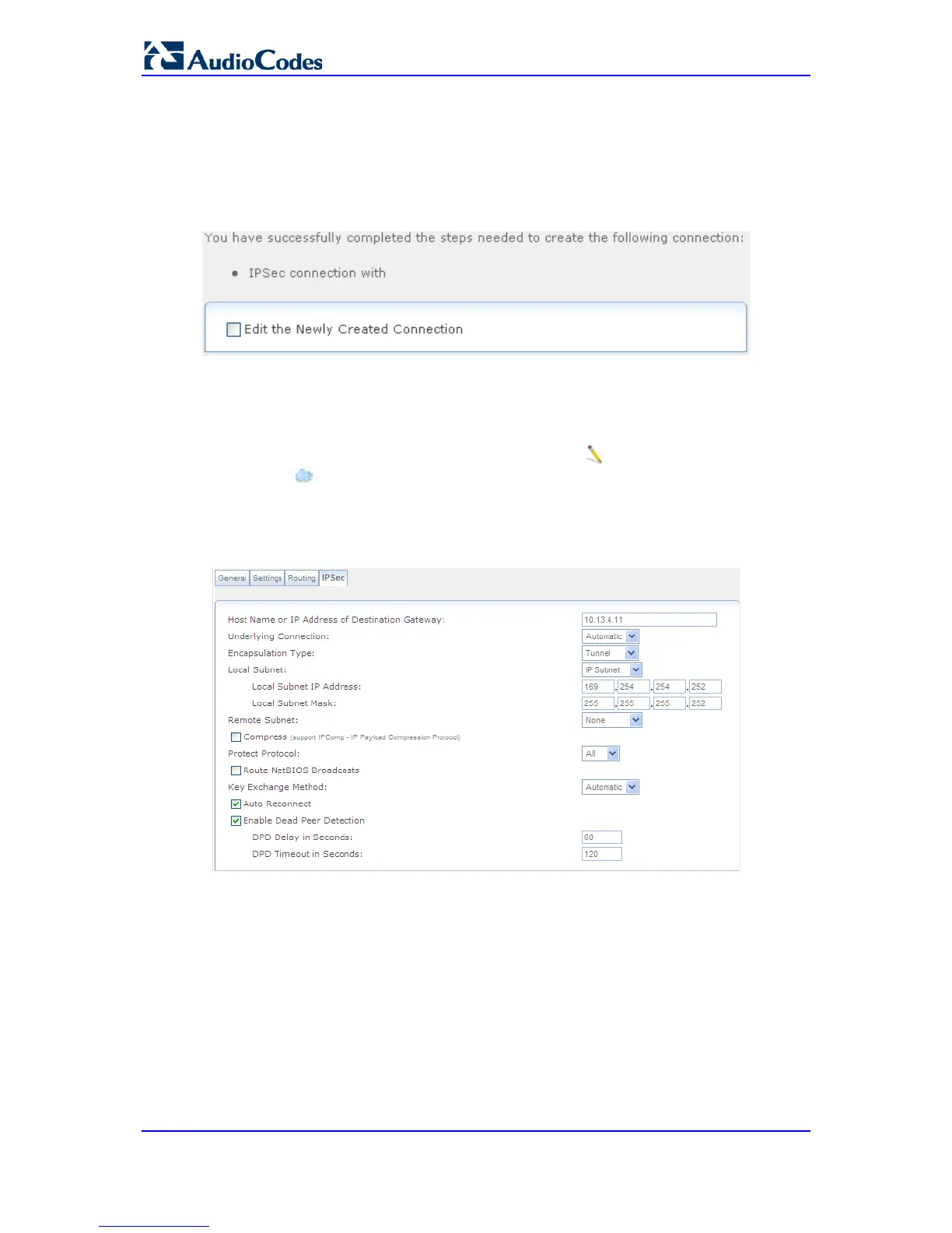 Routing tabs, see 'Editing Existing Connections' on page 614. Click the IPSec tab;