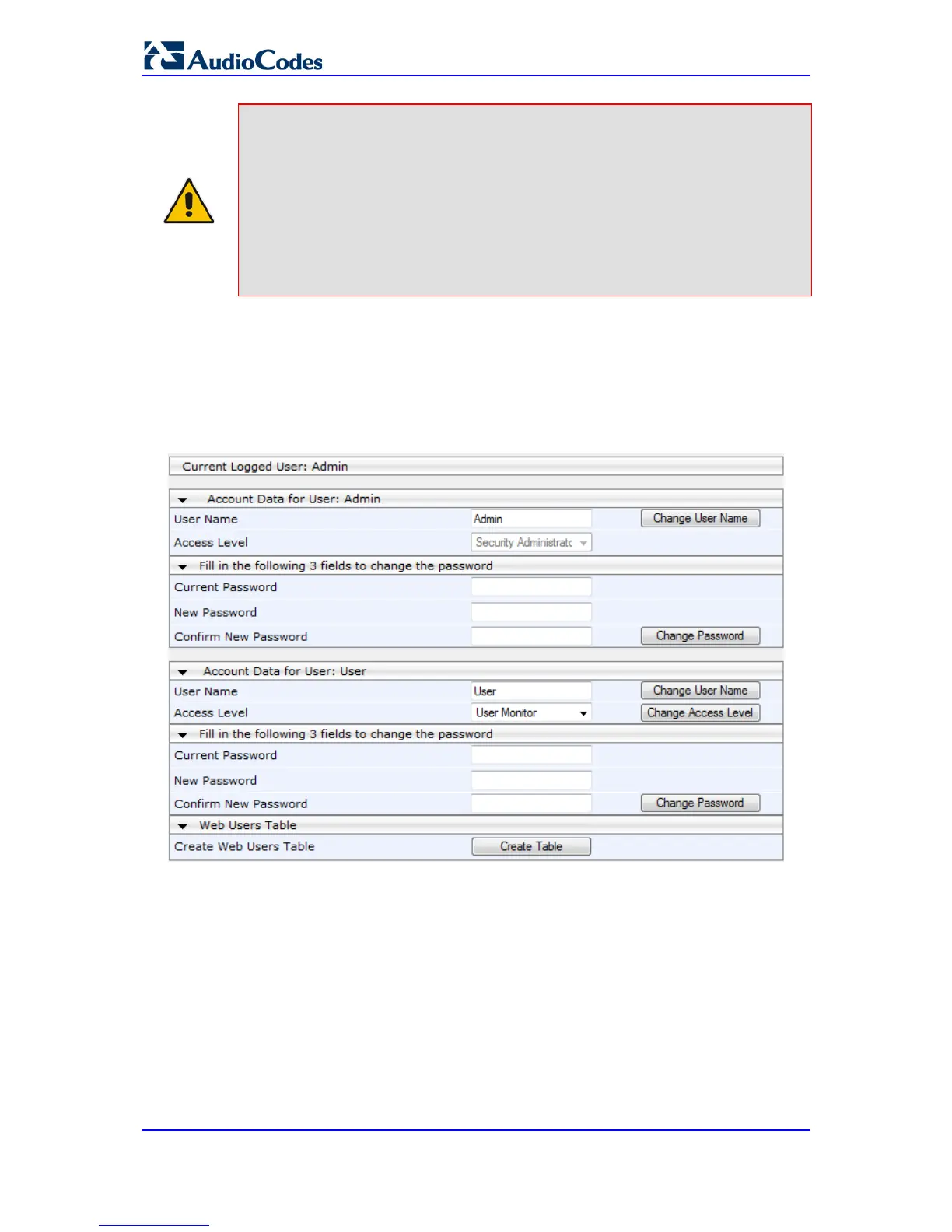 Figure 5-21: WEB User Accounts Page (for Users with 'Security Administrator' Privileges)