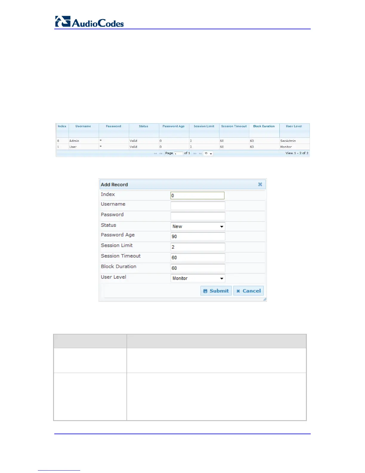 accounts - Security Administrator ("Admin") and Monitor ("User"):