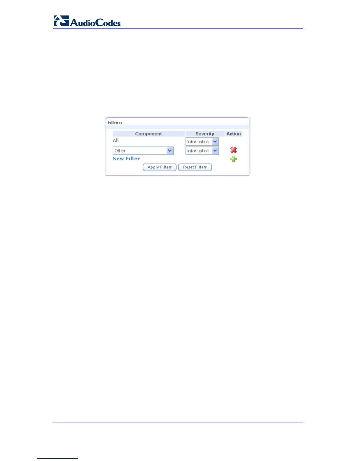 titles 'Time', 'Component', or 'Severity', by clicking the column header. You can also filter