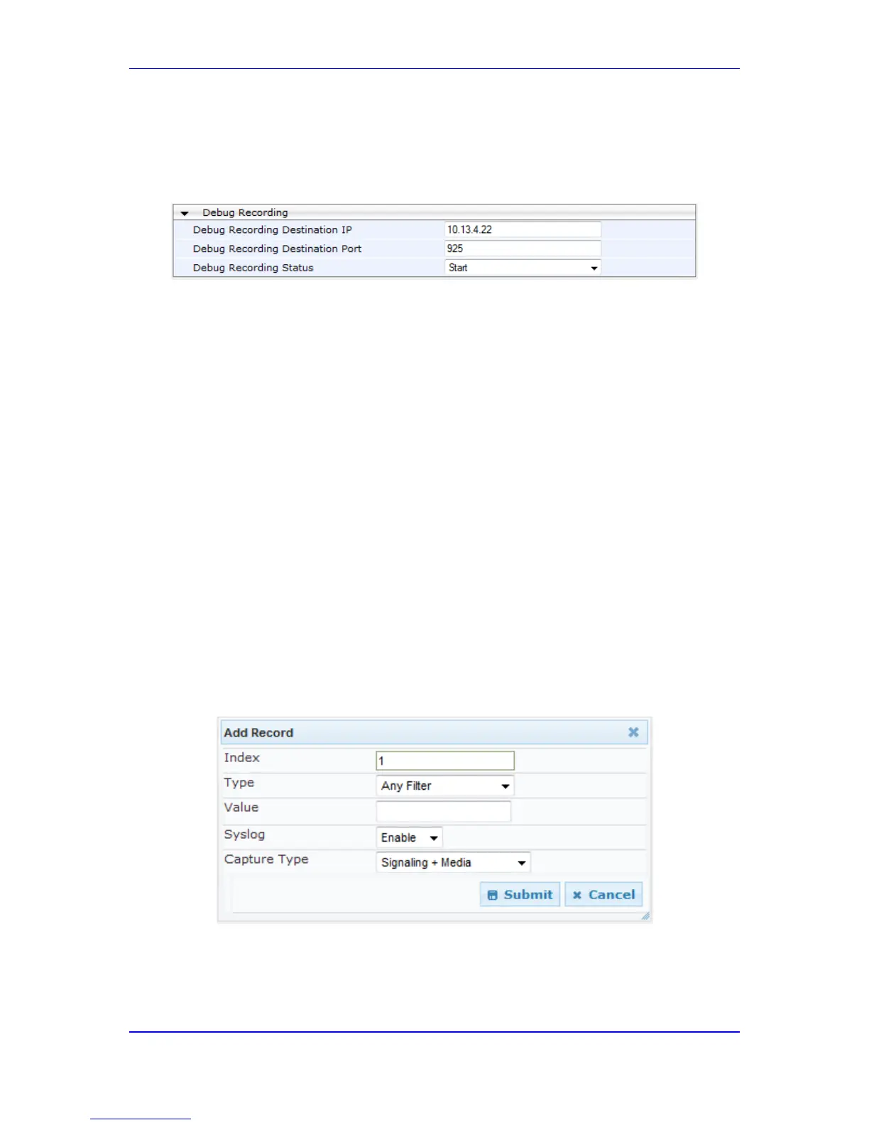 Debug recording can also be filtered using various filtering criteria such as SIP signaling or