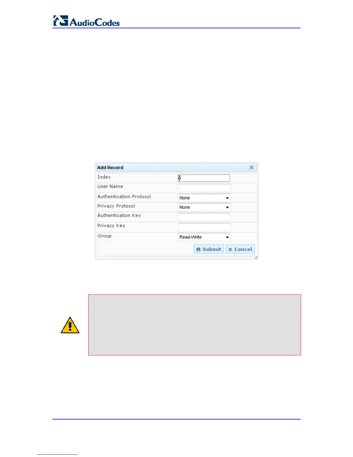 Figure 7-4: SNMP V3 Setting Page - Add Record Dialog Box