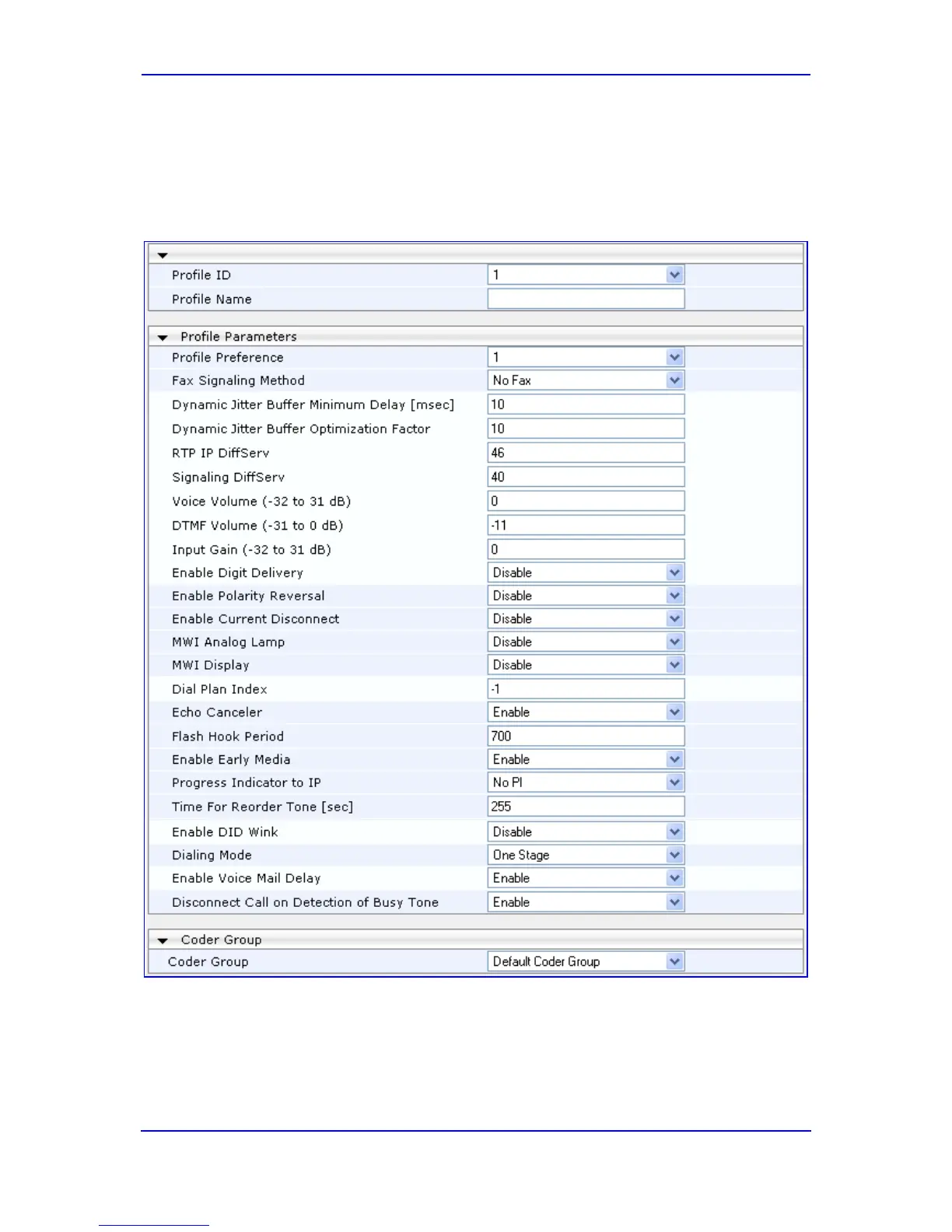 menu > Coders And Profile Definition submenu > Tel Profile Settings