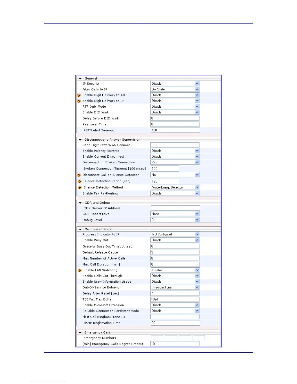 menu > SIP Advanced Parameters submenu > Advanced Parameters
