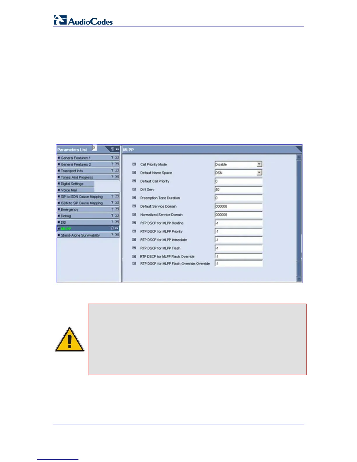 4. Configure the MLPP parameters as required.