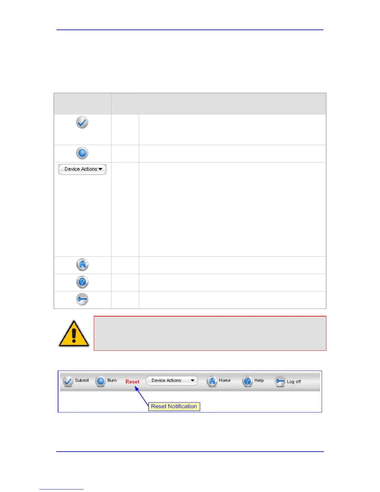 Reset: opens the 'Maintenance Actions' page for resetting the