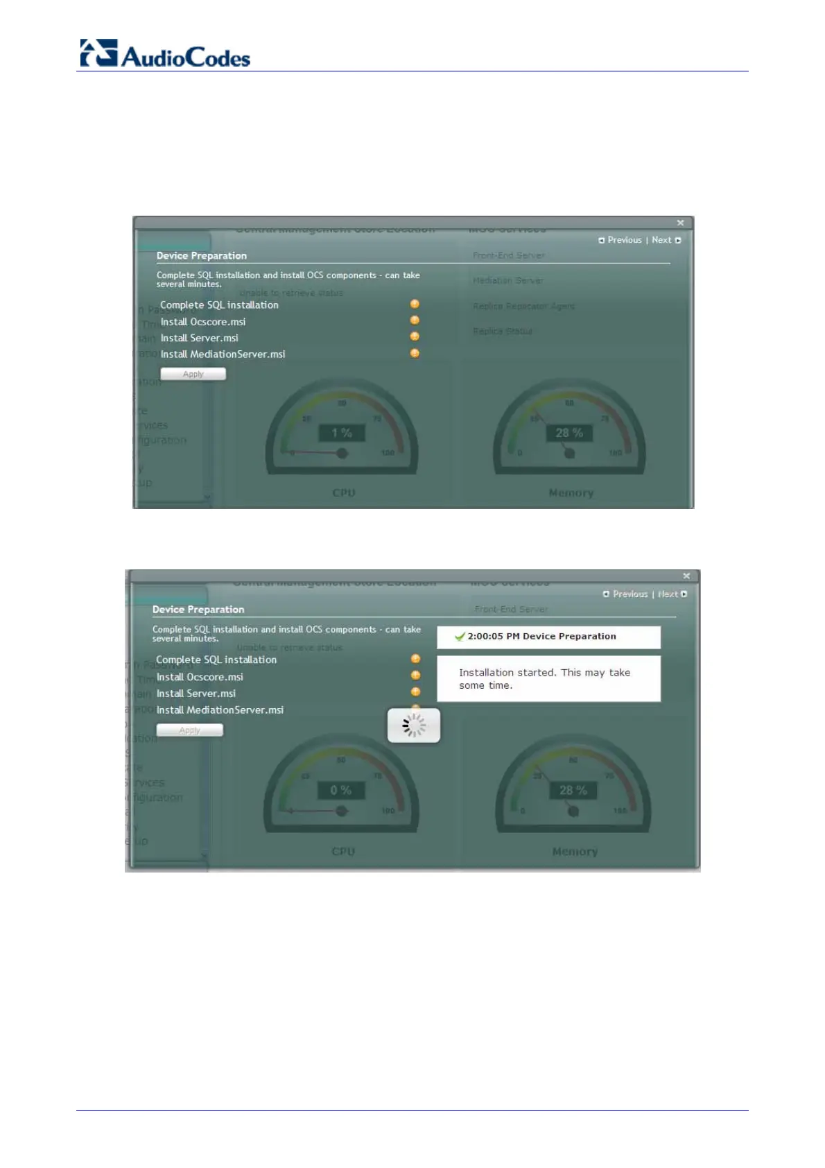 1. On the Setup menu, click Device Preparation; the following screen appears.